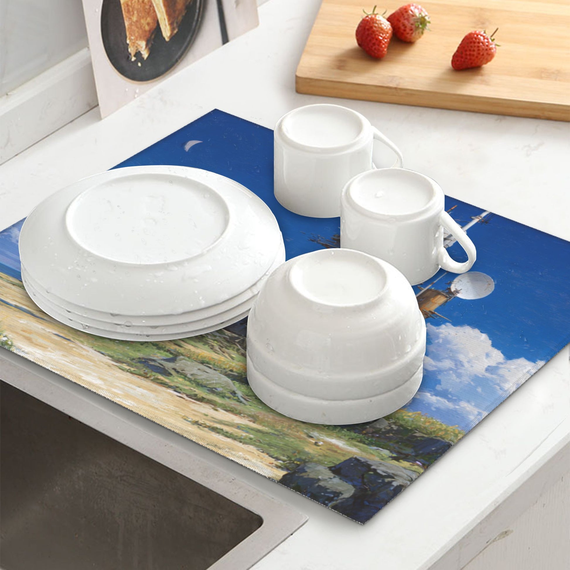 Quickly locks in water from dishes, mugs, or rinsed produce, keeping your counter dry and clean without needing paper towels.